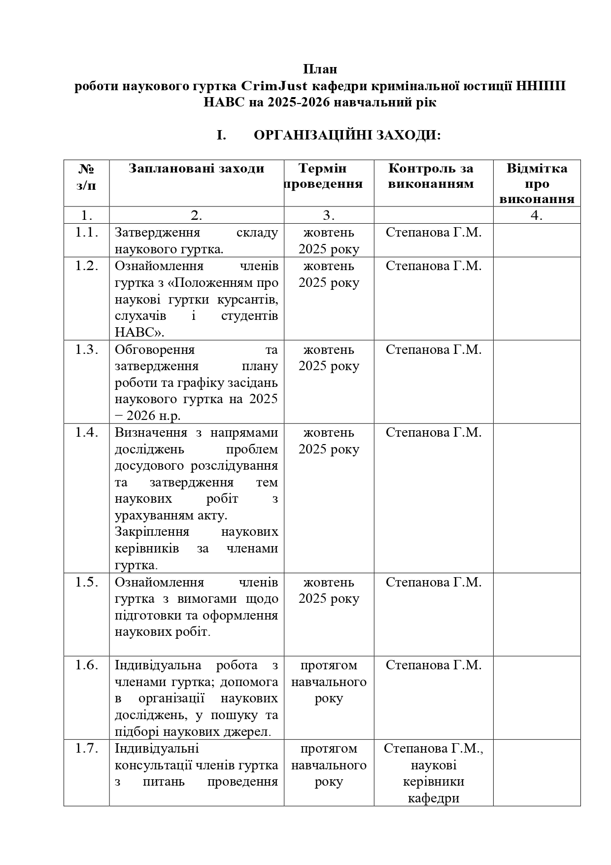 План роботи наукового гуртка