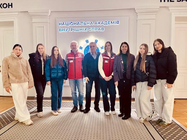 На запрошення доцента кафедри кримінального права та кримінології навчально-наукового інституту права та психології Валерія Архіпова до Національної академії внутрішніх справ з метою зустрічі зі студентами спеціальності «Правоохоронна діяльність» завітали представники київського товариства Червоного Хреста України.