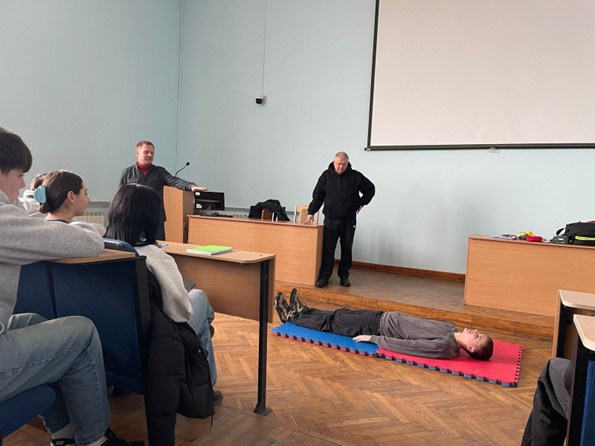 24 лютого 2026 року доцентом кафедри фізичної та тактичної підготовки Сушковим Олегом Олександровичем та старшим викладачем кафедри криміналістики Нагайником Тарасом Григоровичем проведено бінарне практичне заняття з тактичної медицини. Методологічною основою такого заняття виступає принцип контекстного навчання, відповідно до якого засвоєння медичних алгоритмів відбувається у змодельованій професійній ситуації.