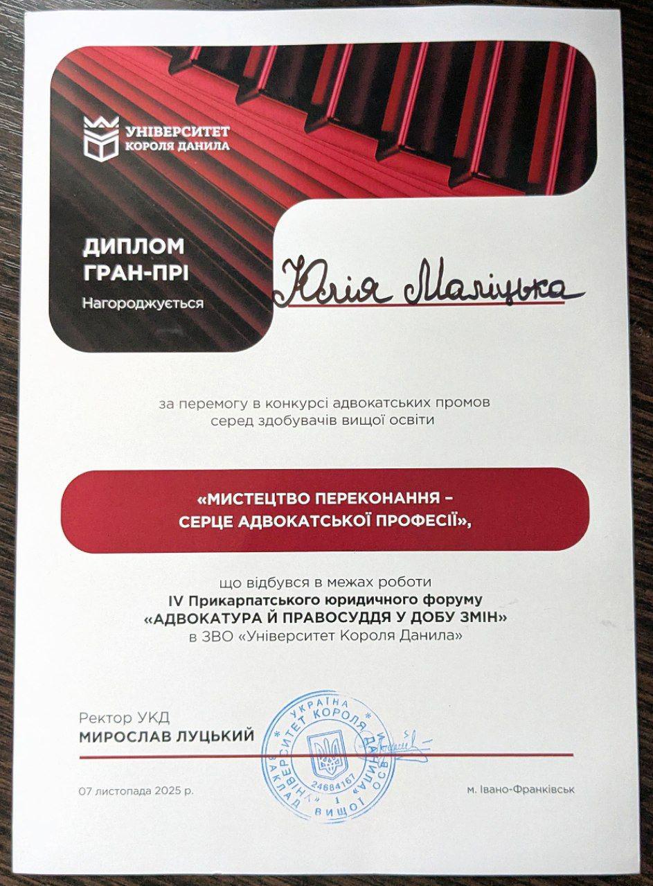 Конкурс «Мистецтво переконання - серце адвокатської професії»: вітаємо переможницю