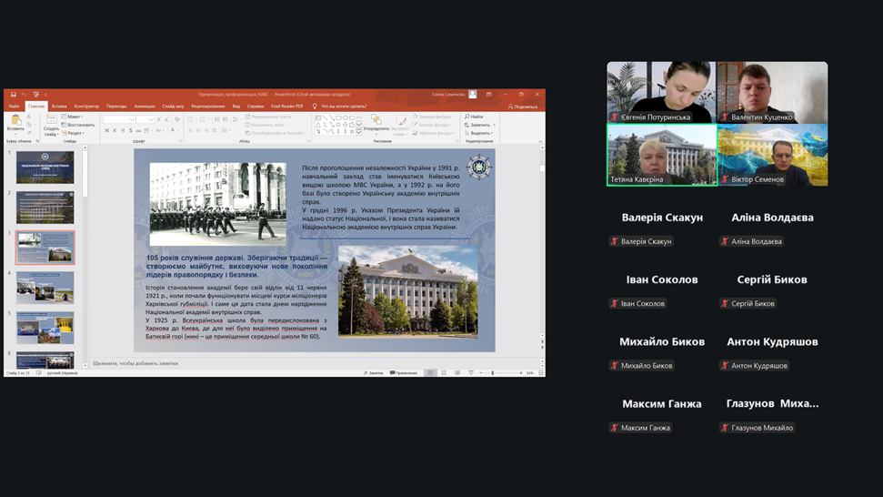 Представники кафедри охарактеризували Академію як провідний сучасний заклад вищої освіти, що динамічно розвивається та впроваджує інноваційні підходи в освітній процес. Було наголошено, що це не просто заклад вищої освіти зі специфічними умовами навчання, а альма-матер майбутніх офіцерів, правників та фахівців у сфері права.