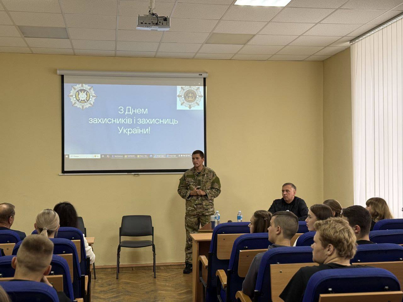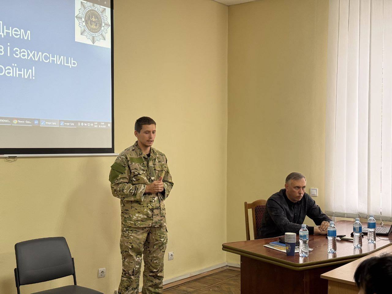 Під час інтерактивної лекції ветеран поділився з присутніми бойовим досвідом, розповів про процес адаптації до цивільного життя, зокрема висвітлив його юридичні аспекти. Студенти мали змогу поставити запитання, обмінятися думками та висловити вдячність за відвагу, самовідданість і героїзм.